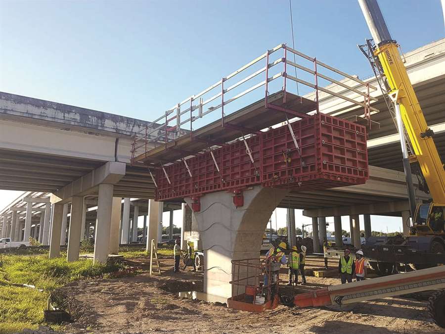 Sistema de encofrado autoportante de Alsina implementado en el intercambiador Golden Glades en Florida, EE. UU. Imagen: Alsina