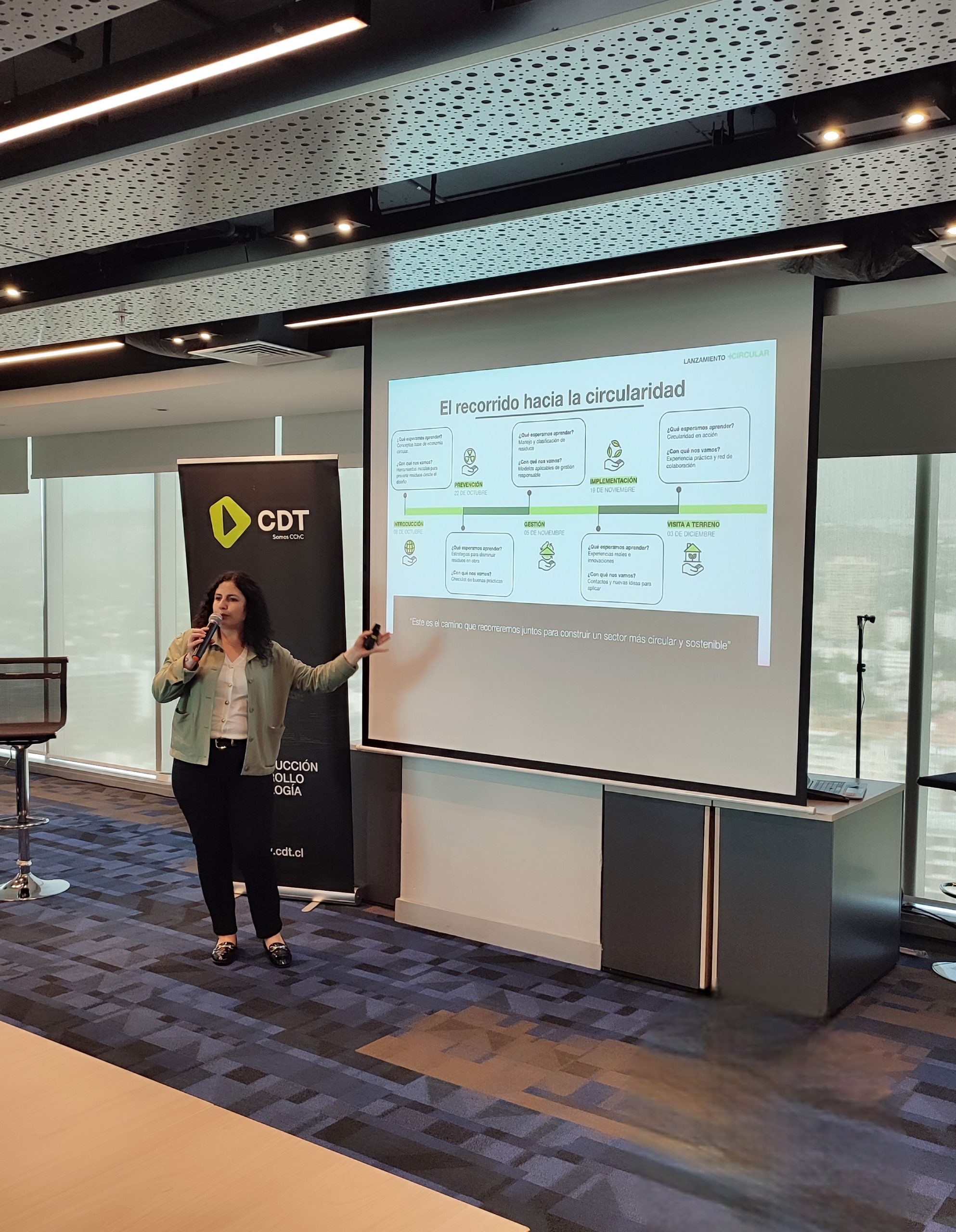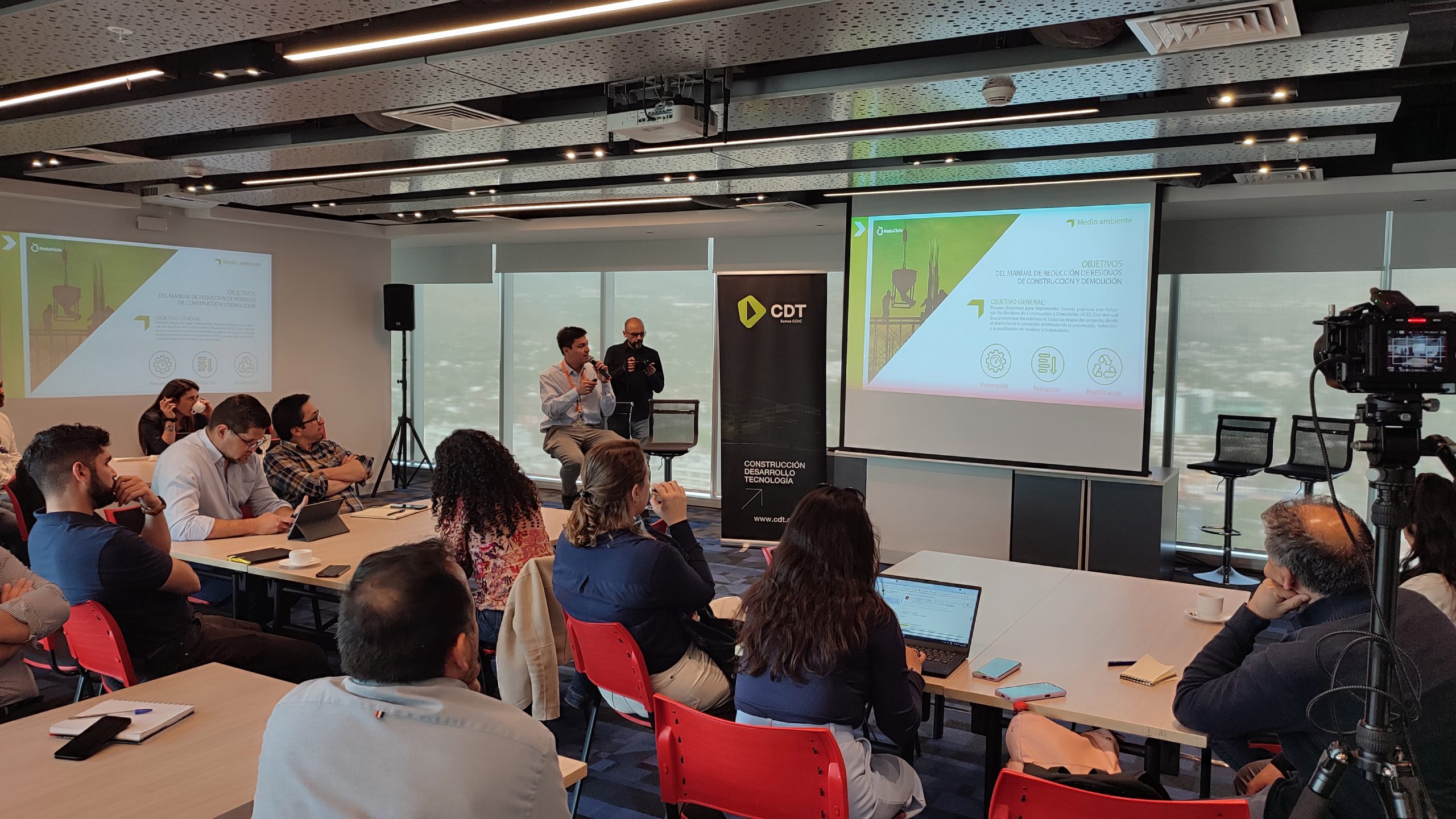 Durante este bloque, también se presentó el “Manual de reducción de residuos de construcción y demolición (RCD)”, documento cuya elaboración fue liderada por CDT en el marco del Compromiso PRO de la Cámara Chilena de la Construcción (CChC), en colaboración con Reduciclo y cuyo objetivo general es proveer directrices para implementar buenas prácticas que reduzcan los RCD, buscando minimizar los residuos en todas las etapas del proyecto, desde el diseño hasta la ejecución, promoviendo la prevención, reducción y la reutilización de residuos y/o materiales. En la oportunidad, se revisaron los tomos de: Diseño, Planificación y Ejecución del proyecto. Puedes encontrar el Manual en: https://compromisopro.cl/medio-ambiente (pestaña de “Herramientas técnicas”).