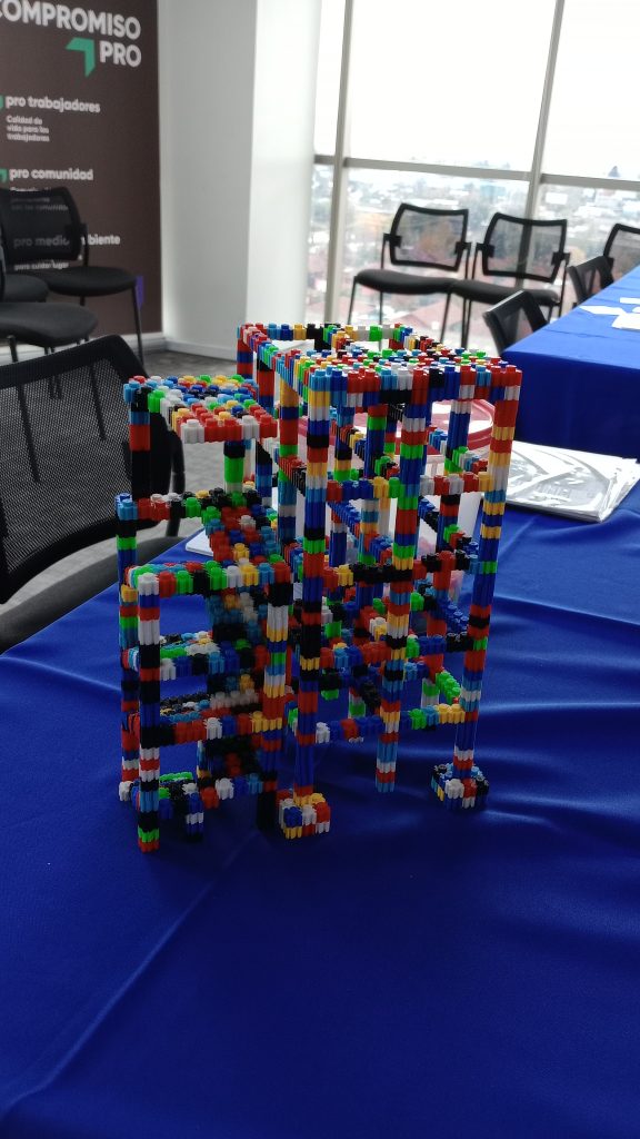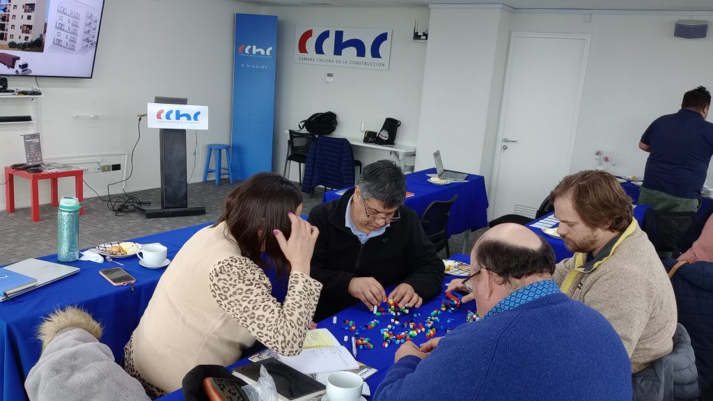 Junto con lo anterior, también se realizó una dinámica práctica empleando bloques tipo LEGO, que desafió a los asistentes a aplicar conceptos como integración temprana, colaboración, definición de roles, prefabricación y diseño para la manufactura y el ensamblaje (DfMA). Esta actividad permitió internalizar de forma lúdica y concreta los principios clave de la industrialización.