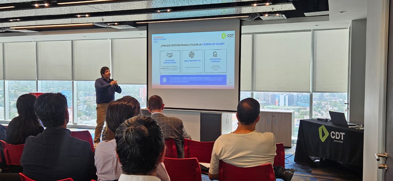 La actividad tuvo lugar en los salones de la CDT, reuniendo a cerca de 50 profesionales del sector construcción, entre ellos representantes de empresas socias, especialistas en gestión productiva y líderes vinculados a la implementación de metodologías colaborativas en proyectos de edificación.