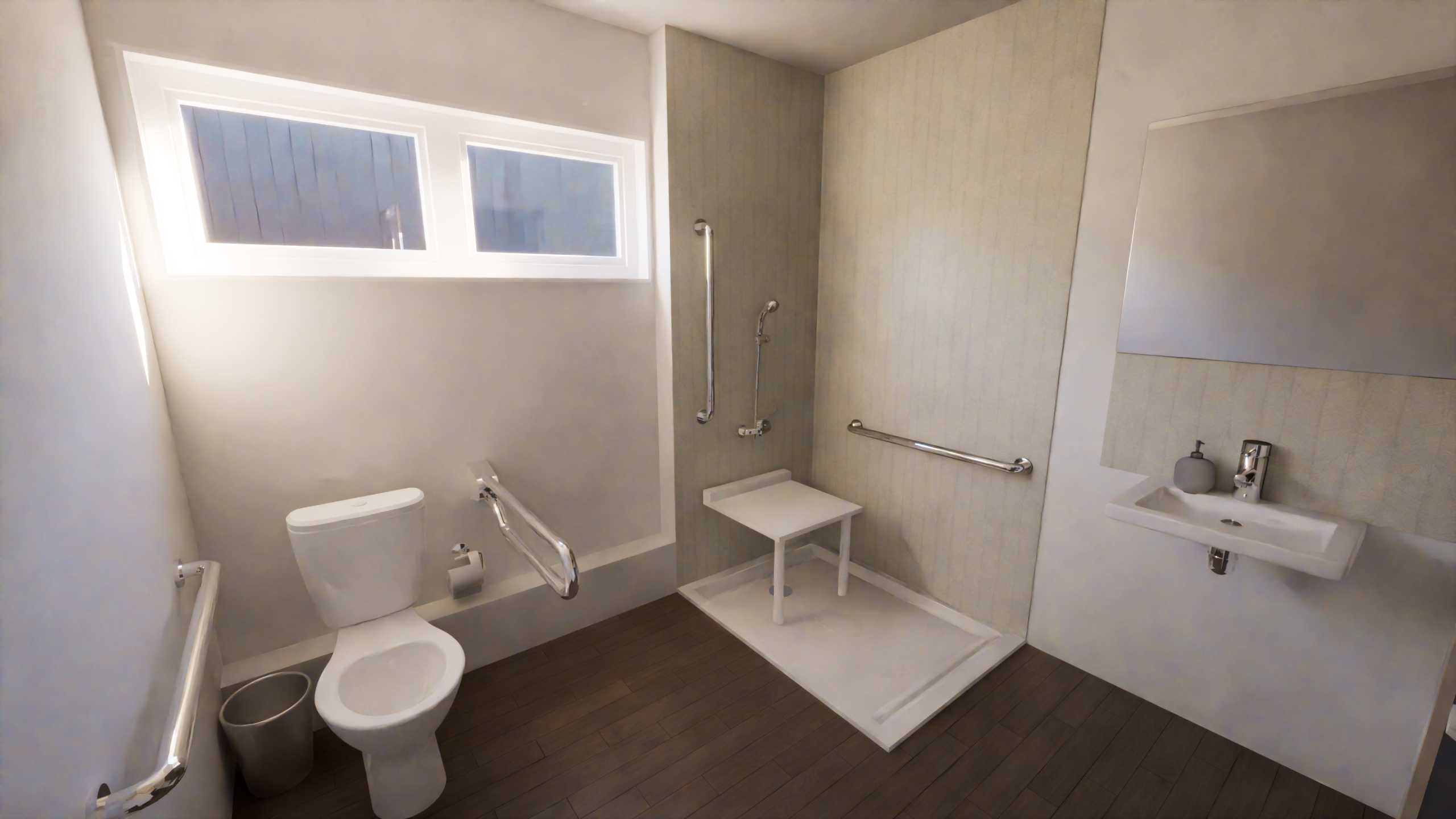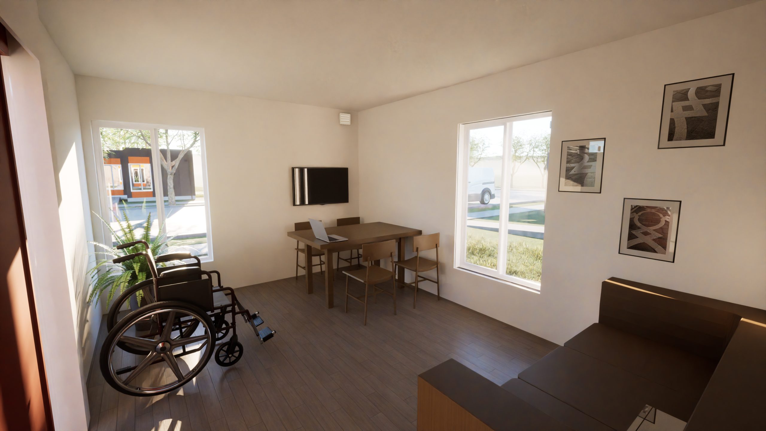 Su diseño incorpora puertas y accesos más amplios, rampas y baños adaptados, lo que permite a los habitantes desenvolverse de manera más autónoma.