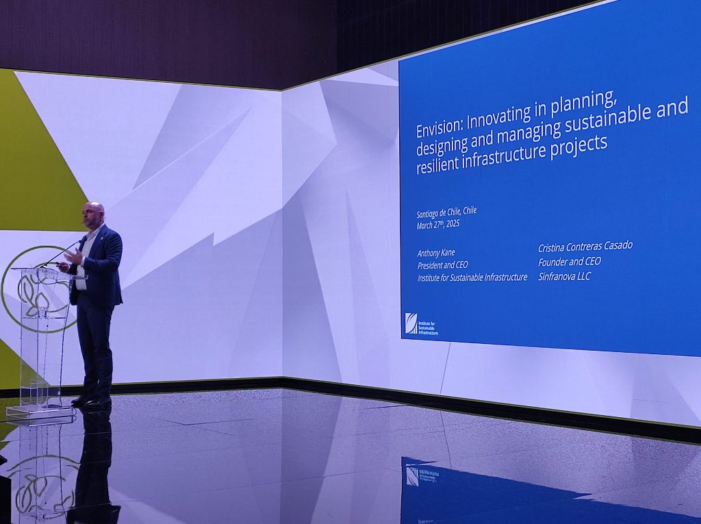 Finalmente, la última charla estuvo a cargo de Anthony Kane, presidente y CEO del Institute for Sustainable Infraestructure (ENVISION) y Cristina Contreras, fundadora y CEO de Sinfranova LLC, quienes hablaron acerca del instituto y de la innovación en planificar, diseñar y administrar proyectos de infraestructura sostenible y resiliente.